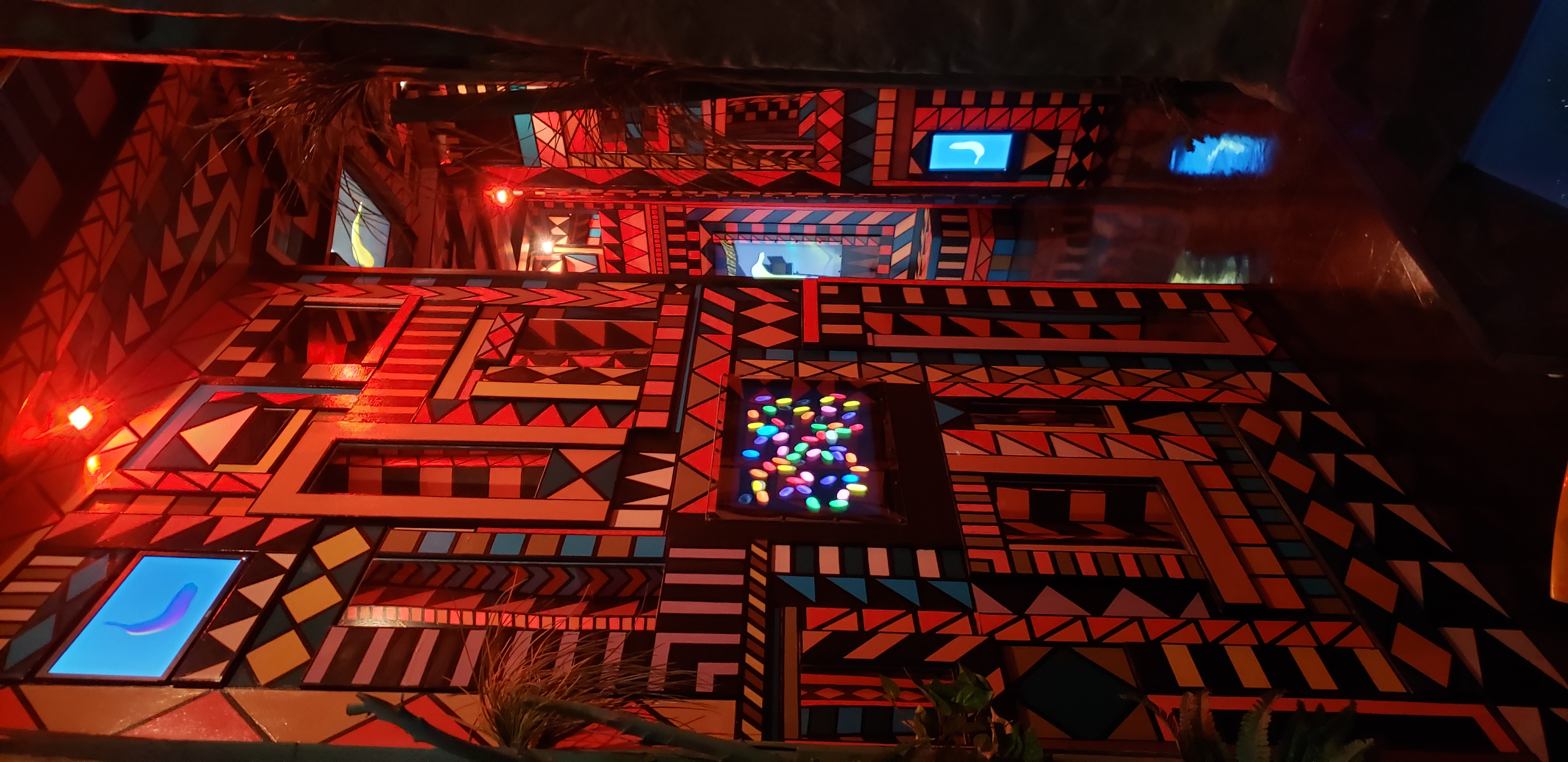 The brief was: make the crystals respond to people. Everything after that was engineering. The system that exists now tracks visitors across the full space and drives nine universes of LEDs in real time. It knows where you are. It noticed when you moved.