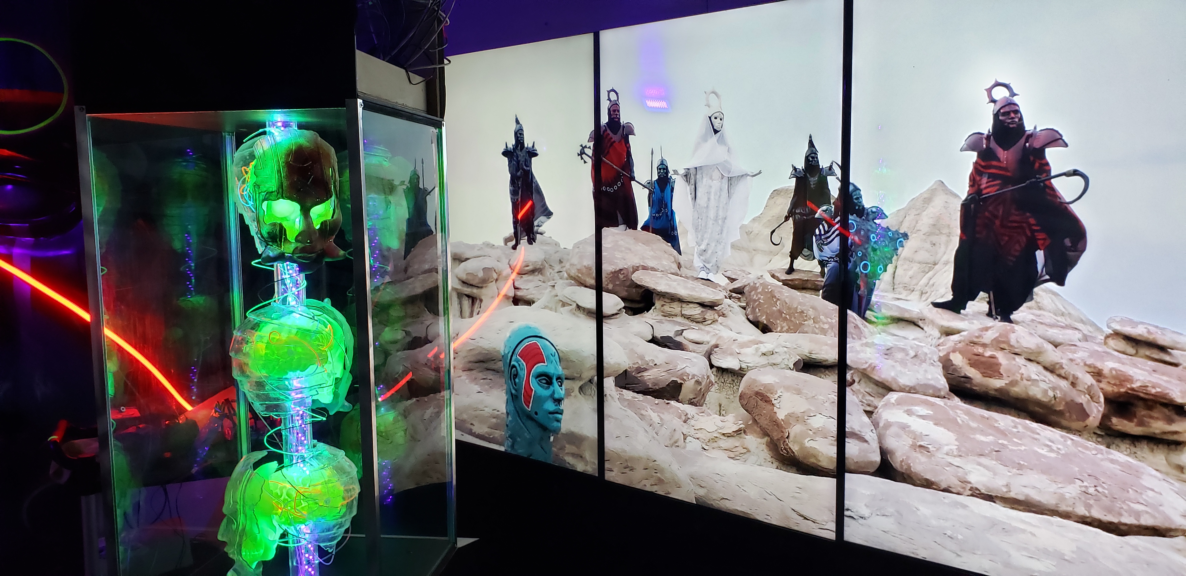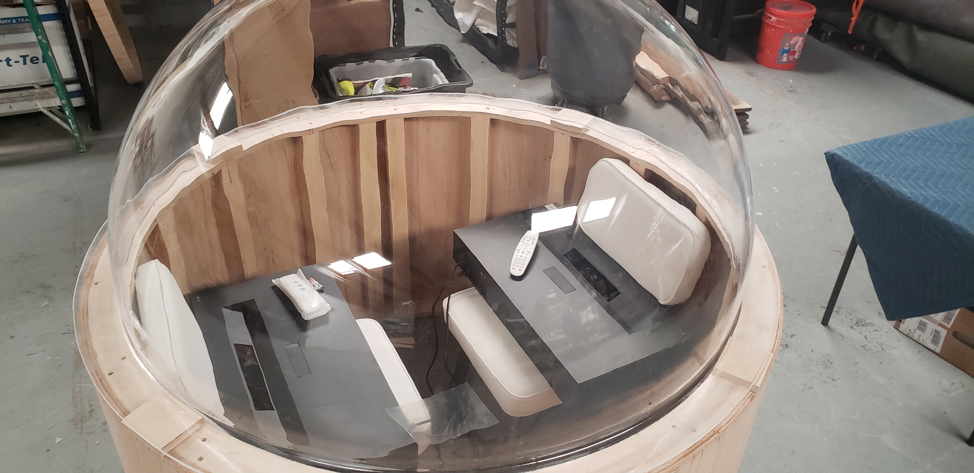 The artist wanted dome projection. Full sphere. No room in the budget for an off-the-shelf solution, and no off-the-shelf solution that would have fit anyway. We figured it out from first principles, built what the space required, and it's been running ever since.